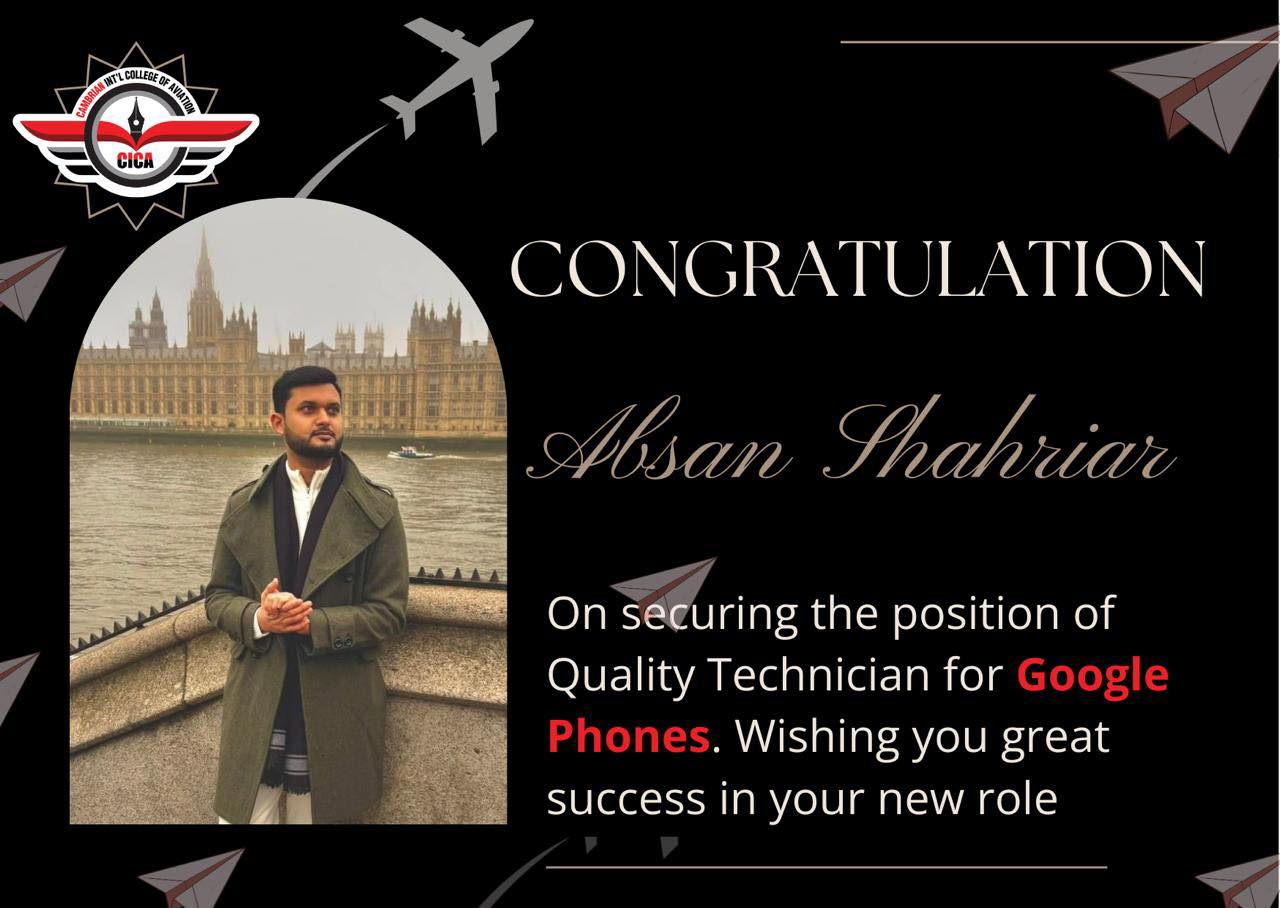 তুমি যদি এভিয়েশন সেক্টরে নিজেকে একজন দক্ষ বিমান প্রকৌশলী কিংবা এয়ারপোর্ট ম্যানেজার হিসেবে দেখতে চাও তাহলে Cambrian Int’l College of Aviation (CICA) হতে পারে তোমার স্বপ্ন জয়ের বিশ্বস্ত সহযোগী।