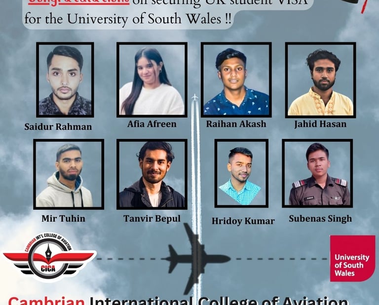 Congratulations to the 08 students of CICA on successfully obtaining UK student visas for the University of South Wales, Treforest campus.