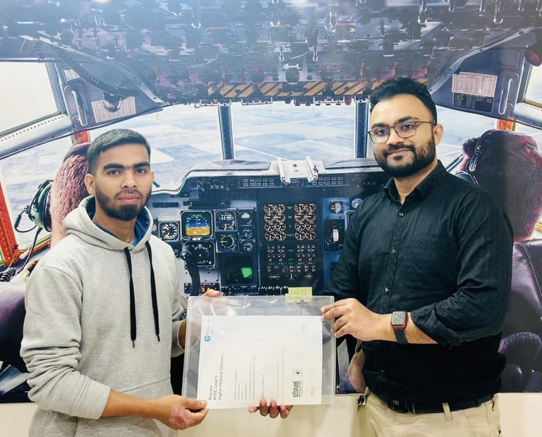 Starting with a Pearson BTEC Level 3 National Diploma (ND) and progressing through a Level 5 Higher National Diploma (HND) in Aeronautical Engineering at Cambrian International College of Aviation (CICA).