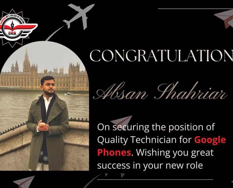 Congratulations to Mr. Tuhin Mir for achieving outstanding grade on your completion of BTEC Level 5 in Aeronautical Engineering programme. We wish you all the best for your future career.